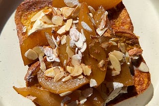 French Toast with Chai Poached Pears & Mascarpone