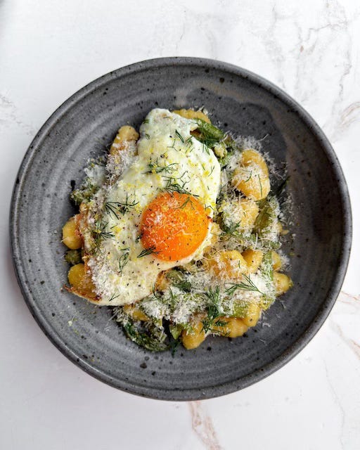 Asparagus Gnocchi with Lemon, Parmesan, and Fried Egg