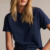 My most worn outfit is t-shirts and jeans, so I’m always looking to buy 500 of the same t-shirts when I find a fit and style I like a lot. Ok, not actually 500, but I always buy multiples of a t-shirt one I find a good one. I like when they’re cropped enough to fall right above the waistband of my jeans, but not too high that they’re a belly top. American Eagle had the best tee like this that they discontinued (sad), but the closest I’ve found is this Léon t-shirt! It comes in navy, white, black, and a gorgeous cherry red that will probably be my next purchase.