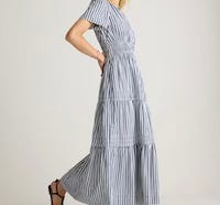 Now that the weather has heated up, I combed through my closet recently to find out which of my dresses were breastfeeding-friendly. Spoiler alert: most of them weren’t! I love to wear dresses when the weather is warm, so I went ahead and got one of my favorite dresses in another pattern so I’ll have more options for spring and summer. This striped Quince dress is made from 100% cotton poplin, and I kind of hate this term, but the cut really is SO flattering. I have it in the floral print (romantic stems) and love it, so I can’t wait to wear this one as well.