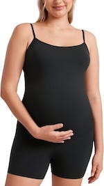 I actually struggle to find good workout rompers that fit me properly, but I LOVE this maternity romper from Crz Yoga on Amazon. It’s buttery soft and surprisingly holds up the girls? There’s also ample room for a growing belly, and it’s just so comfortable. I wore it hiking in Hawaii, and I wear it to do yoga/lounge in the house all the time. If I go out, I also like to throw my Aerie striped button down over it as well!