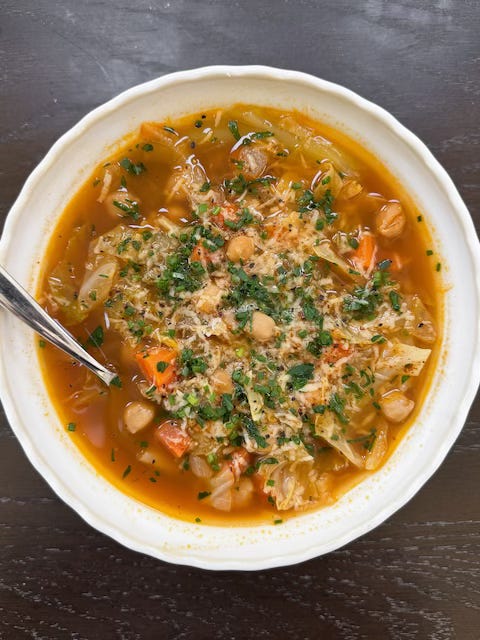 Nourishing Cabbage Chickpea Soup with Herbs and Parmesan