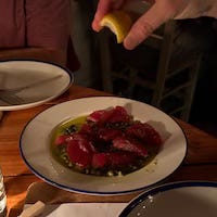 Mandolin Aegean Bistro: got so many recs for this place, and I see why! Cute outdoor dining an old 1940’s home. Good Mediterranean food with a lovely vibe!