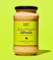 I am not one to typically make Pasta Alfredo, but the Sauz Salted Pistachio Alfredo is truly something else. It has that Alfredo energy without being too heavy or one note — the pistachio addition is such a nice touch. Pour this over some pasta with some oven-baked chicken breasts, and you’ve got a super easy, elevated Chicken Alfredo. Bonus points if you want to go high protein with something like Brami!