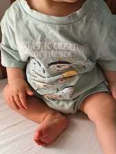 I saw a TikTok where a woman took her toddler-sized t-shirts and turned them into rompers for her baby by adding some snaps. I was inspired, so I went to a thrift store by my house and picked up a few toddler-sized tees and ordered this kit from Amazon to get crafting. This is my new favorite hobby! It ends up giving Sagan unique outfits that literally cost just a few dollars, and it’s very easy to do. One note: the reviews are a little iffy, but I had no issues with it!