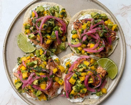 Salmon Tacos with Mango Avocado Salsa