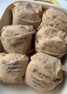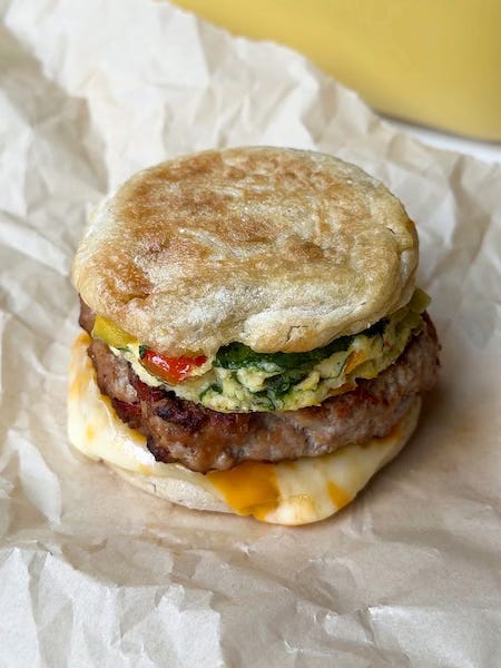 Spicy Maple Breakfast Sandwiches with Veggie Eggs (freezer-friendly)